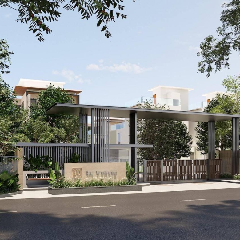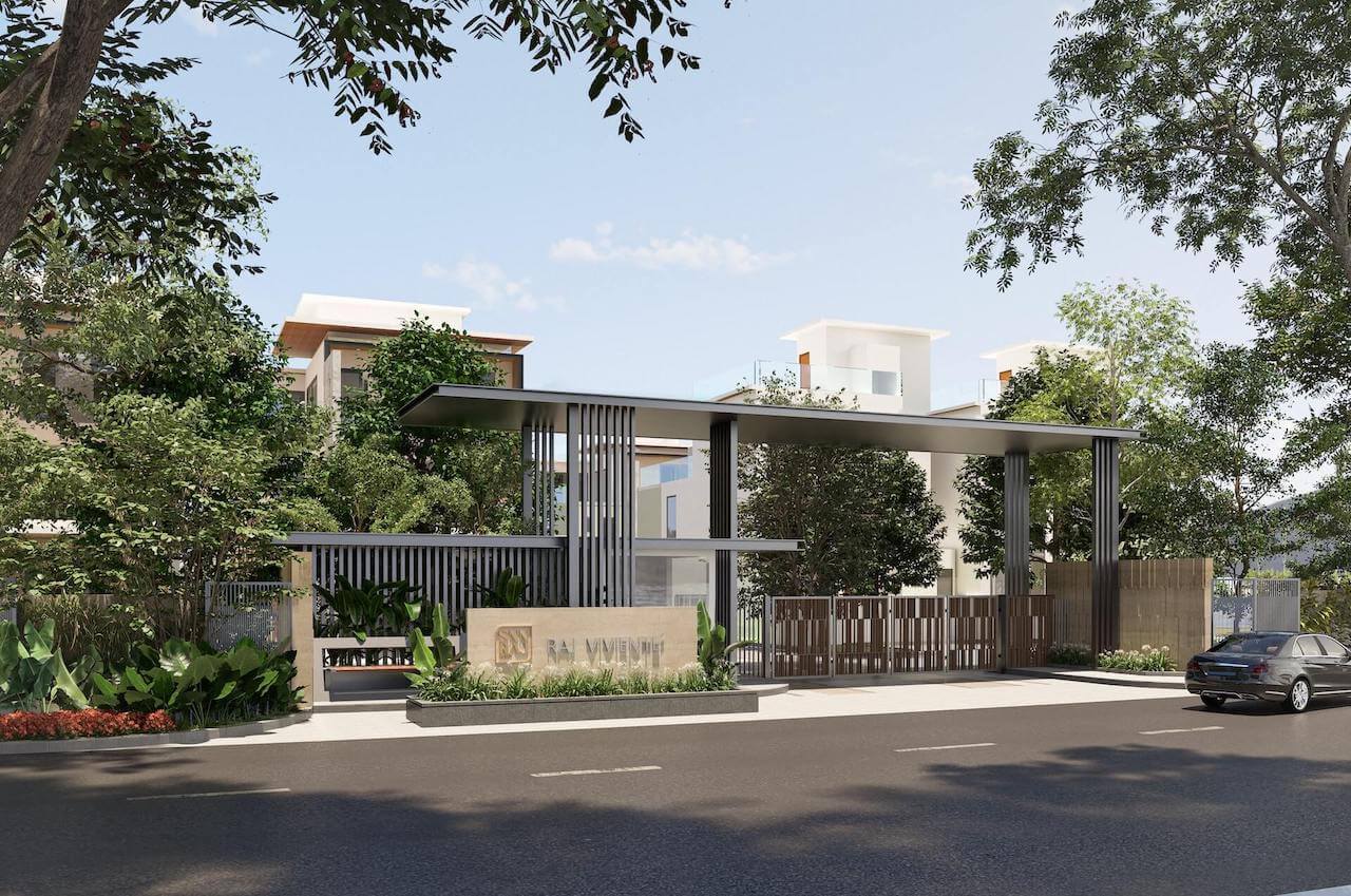 Overview: Raj Viviente by SNN Corp offers 64 Ultra Luxury 4BHK(G+2 Floors) Villas With Private Backyard Garden Off Bannerghatta Road Near Nice Rd Junction in South Bangalore. The 3891 Sqft lavish villas feature double height ceilings, 18 feet tall windows, 2 covered car parkings, provision for elevator & much more.